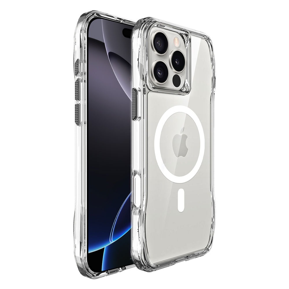 Sim. A capa conta com anel magnético integrado que garante encaixe preciso com carregadores e acessórios MagSafe.